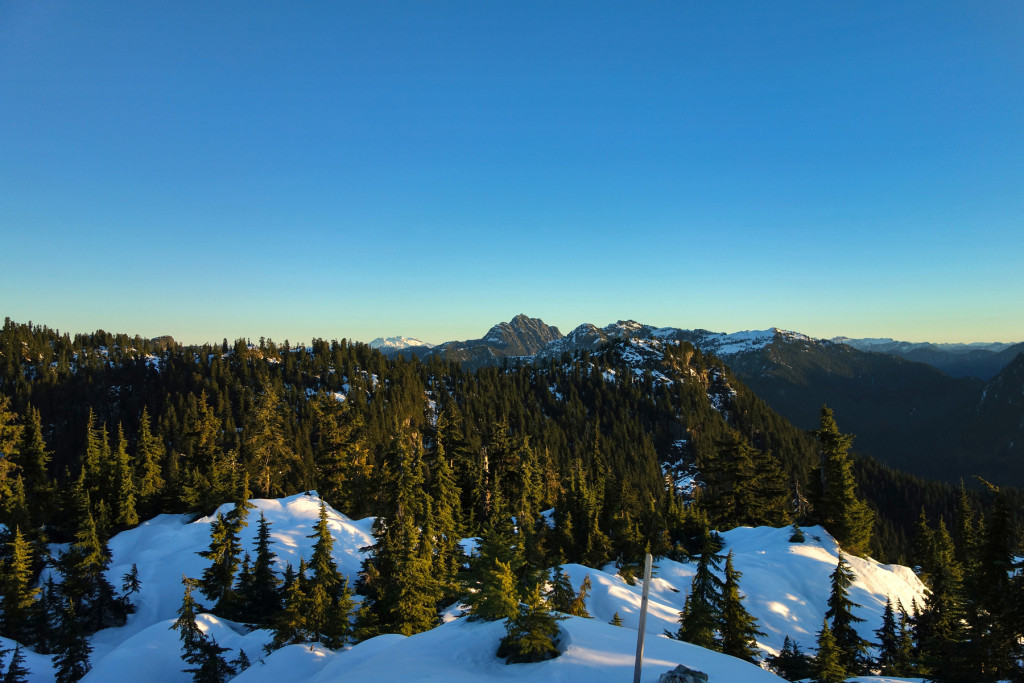 This is an easy hike/snowshoe in the Grouse slackcountry with views of the Lower Mainland and beyond. Pros