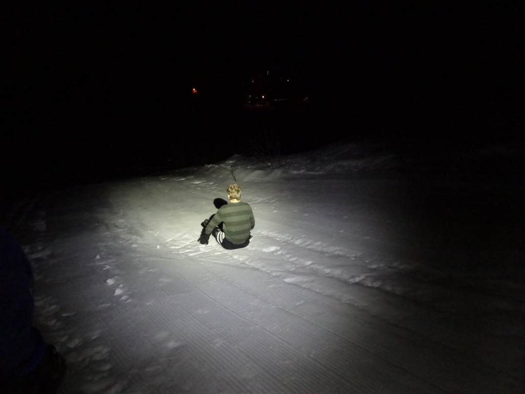 Day 1: Ryan & I arrived at the chalet in the evening. After a few quick hellos and settling in, we layered up to head out on the hill for some crazy carpeting, boarding, and good ol’ sliding down on jackets. One of the girls was struggling with low blood sugars so a few of us stayed back until she picked up. Eventually, we caught up to the group: